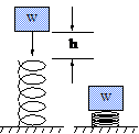 Since there is elasticity in all collisions, a drop test can be modeled by the impact of a weight with a spring. A spring that has a weight (W in the figures below) resting on it will be deflected a certain amount (dST) from its free height (Figure 1).