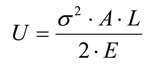 In Figure 4 above, U is the energy absorbed by the rod, σ is the stress created by the deformation, A is the cross-sectional area, L is the length, and E is the elastic modulus of the material.